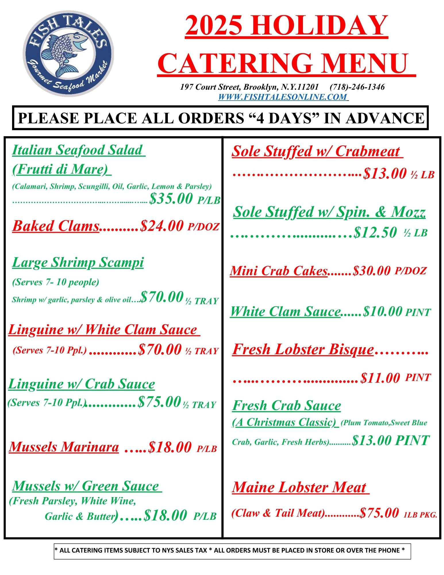 Holiday Catering Menu 2025